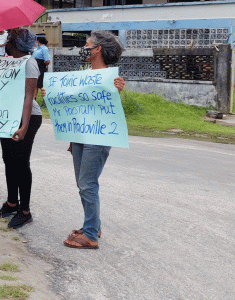 She said this was not the only alarming action of the EPA as the group also believes the agency is not fulfilling its mandate of protecting Guyana. “The EPA in some cases were not fulfilling their mandate to protect the environment of Guyana, to protect the safety of communities, the safety of all those who live in communities on this coast who are in the vicinity of where these facilities… These waste facilities have been established so this was our concern,” the picketer said as she held up her placard.