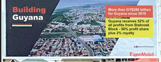The company also indicated on the billboard that Guyana has received more than $280B since oil production started here late 2019.